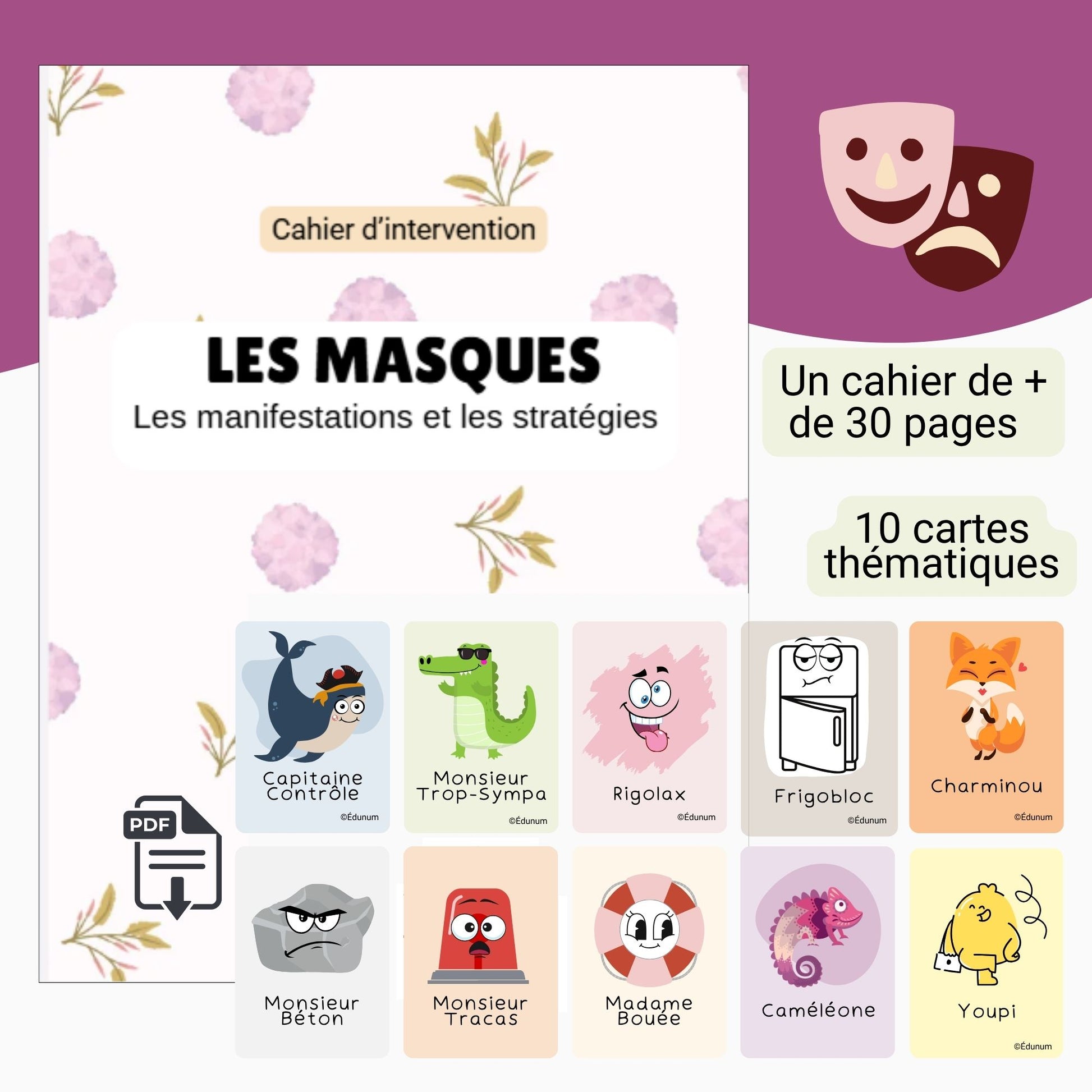 ✨ Chaque masque est aussi incarné par un personnage symbolique, proposé sous forme de cartes à utiliser en intervention.