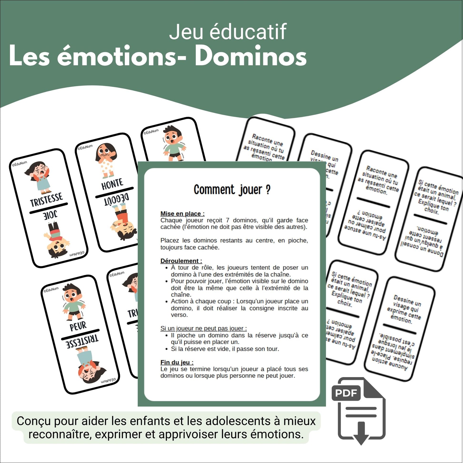 ✨🎲 Un jeu de dominos original conçu pour aider les enfants et les adolescents à mieux reconnaître, exprimer et apprivoiser leurs émotions.